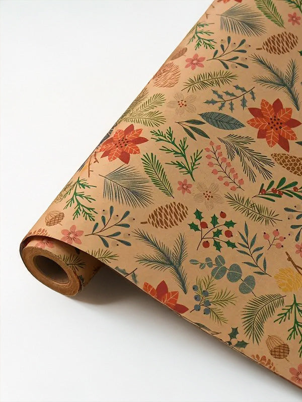Hartie craft imprimata cu motive florale si vegetale în tonuri calde.