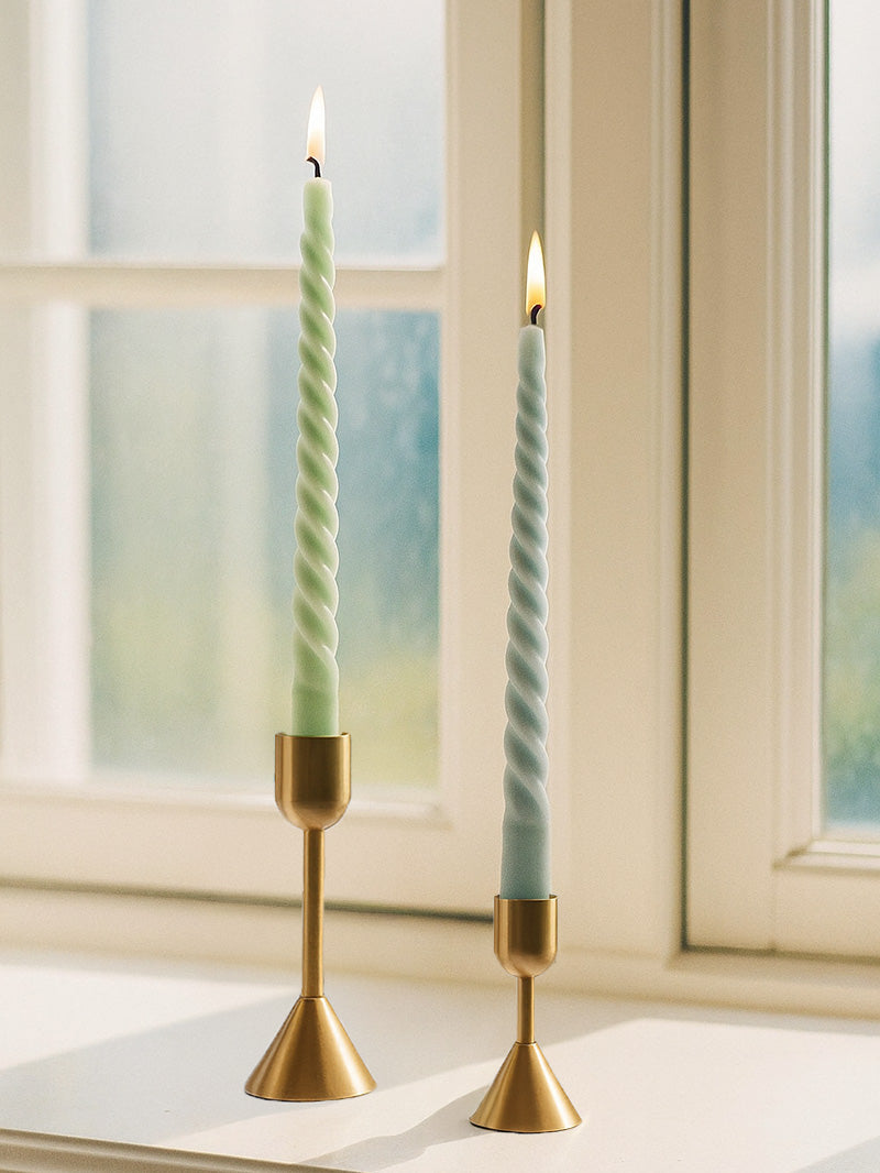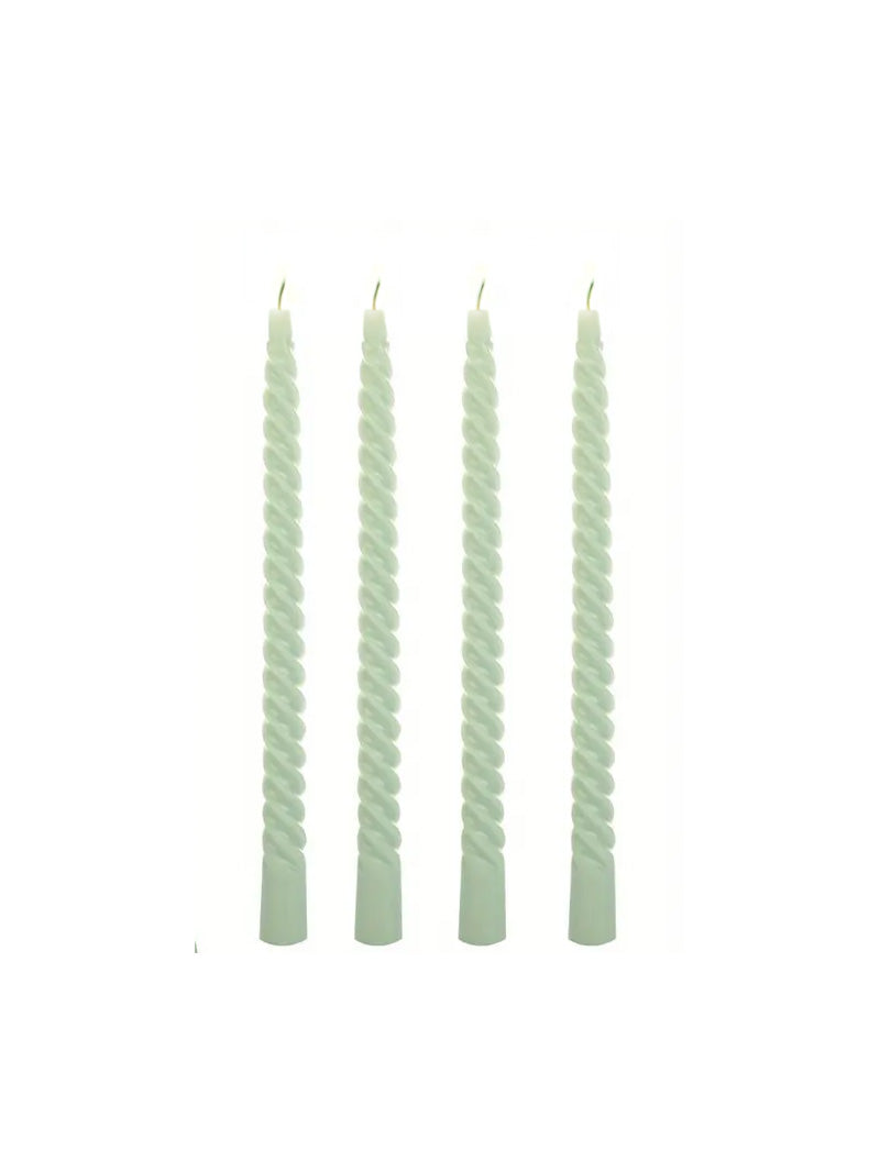 Set de 4 lumanari lungi rasucite, potrivite pentru suporturile clasice.