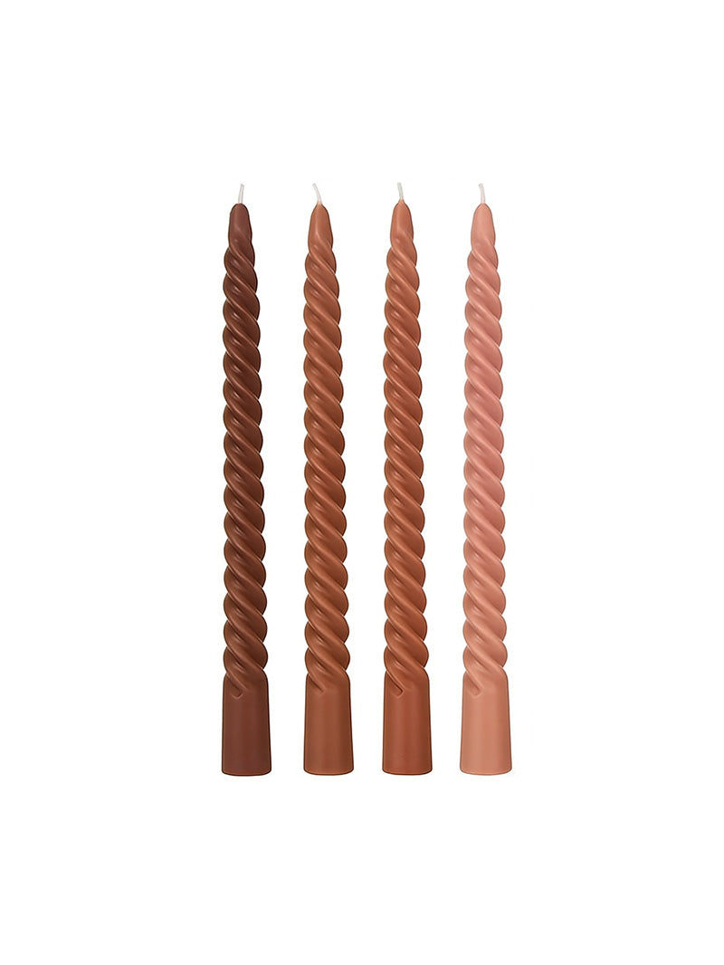 Set de 4 lumanari lungi rasucite, potrivite pentru suporturile clasice.